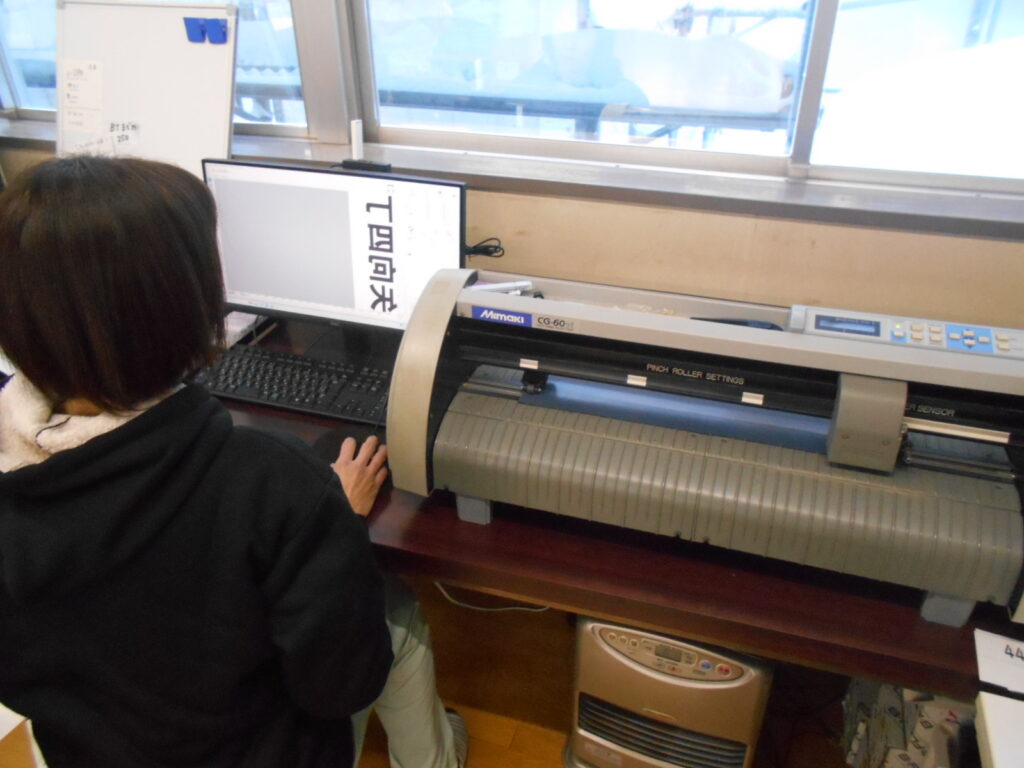 その後、カッティングプロッターにて熱転写シートを文字を出力し、文字を切り出します。
