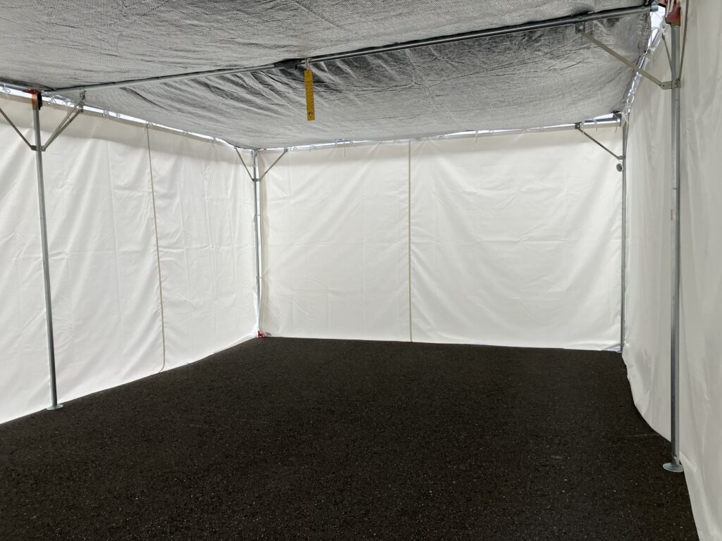 既存のテントの内側に、アルミ蒸着シートを貼り付ける事で熱を遮り、内部を涼しく保つことが可能です。
