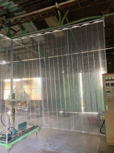 大型機械を守る、間仕切りカーテン施工